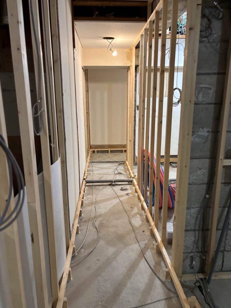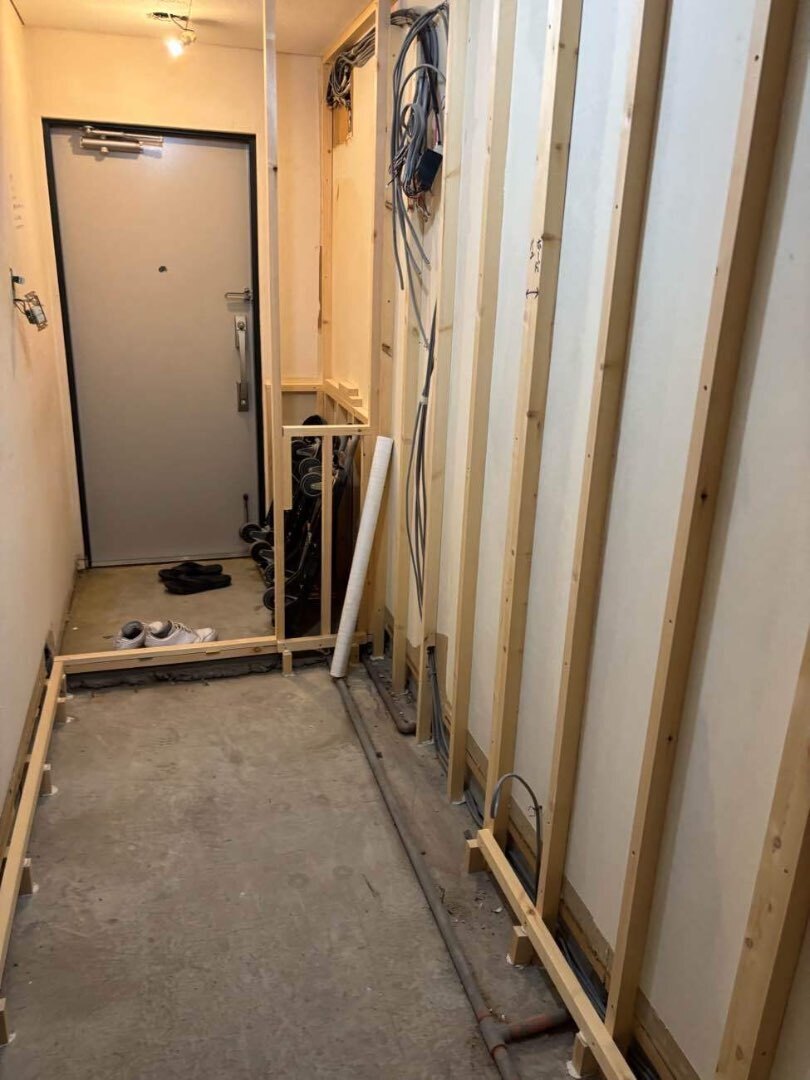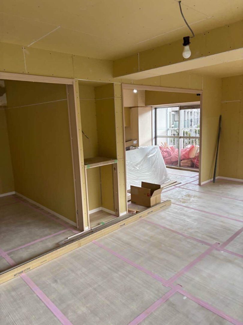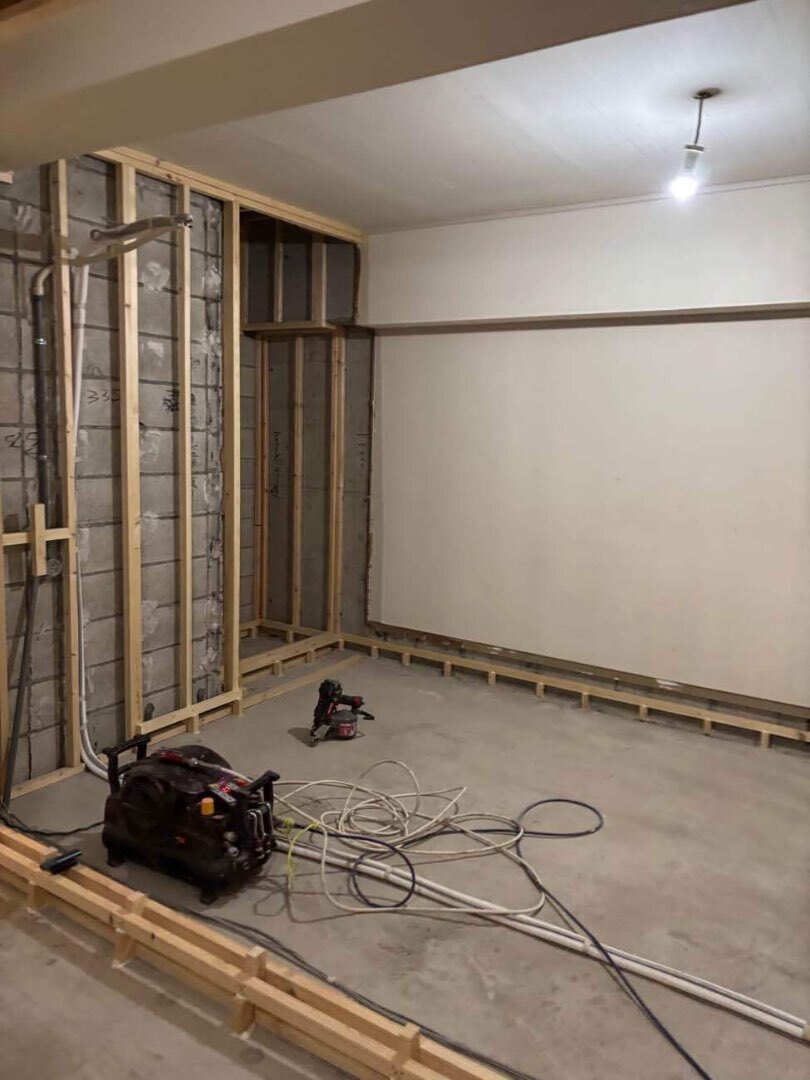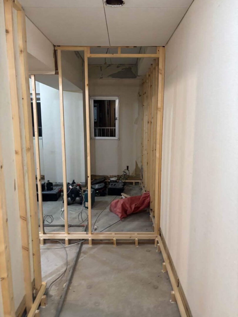解体後から木軸で下地を作っていき石膏ボードで仕上げていきます!