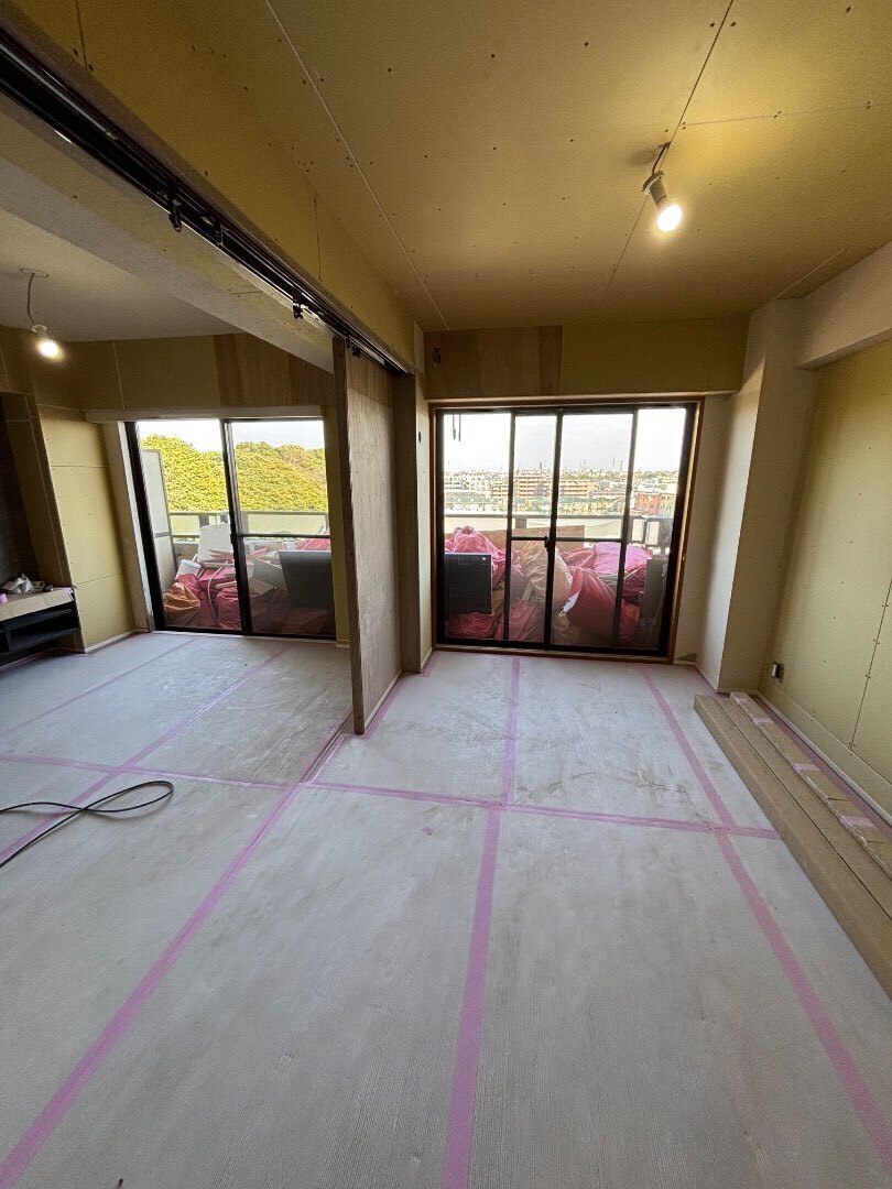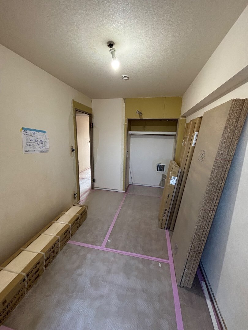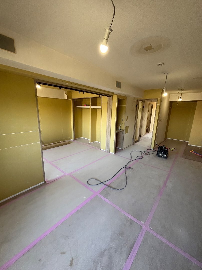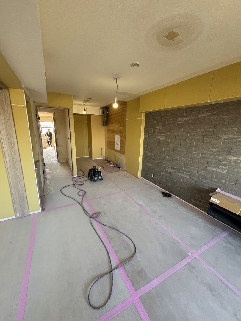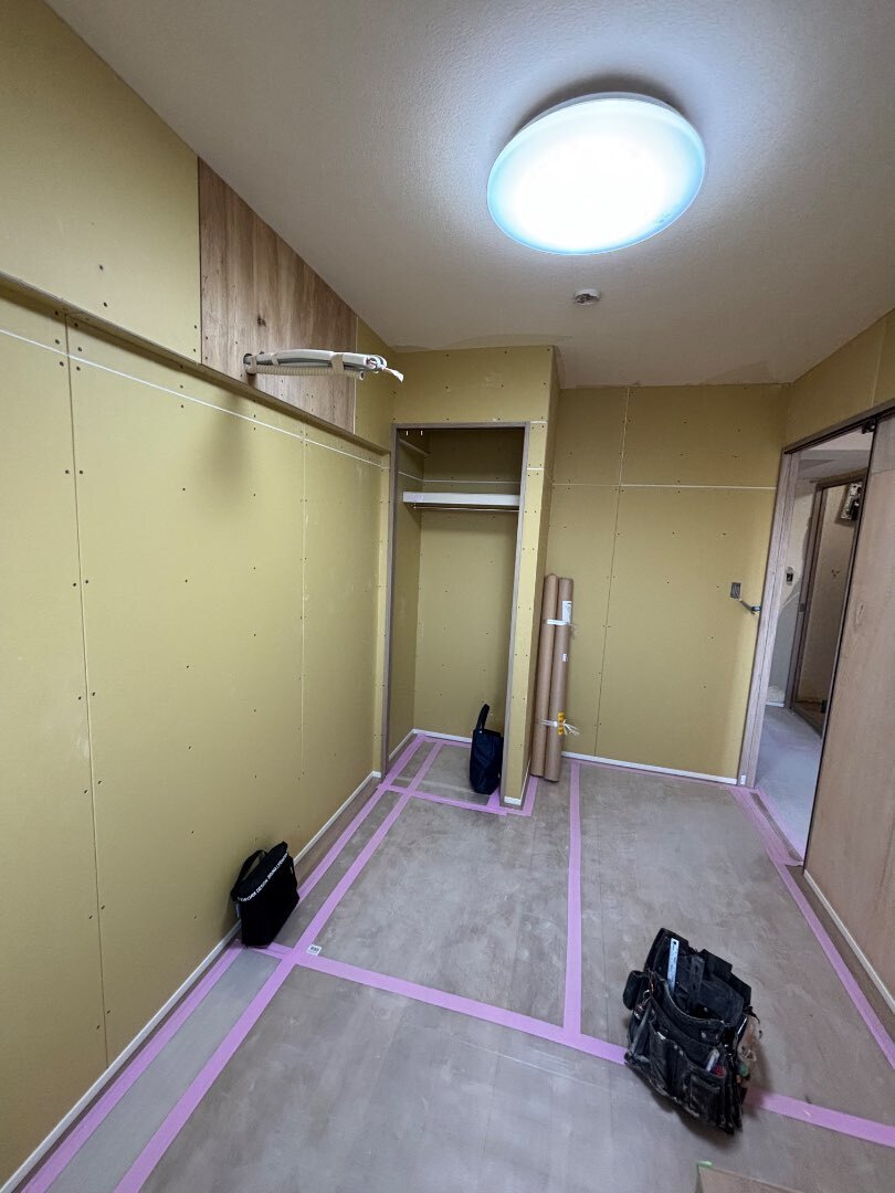 今回はTVボード設置面にエコカラットを取付けする普段とは違う完成予定なので、クロスを貼った後に、どのような姿になるのか楽しみです!